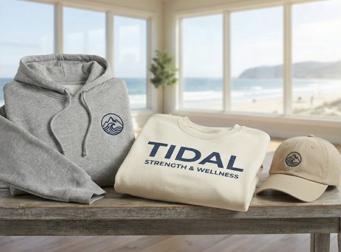 Hoodies, crews, and hats work when they are designed like real apparel, not uniforms. Neutral colors. Simple graphics. Comfortable fits.